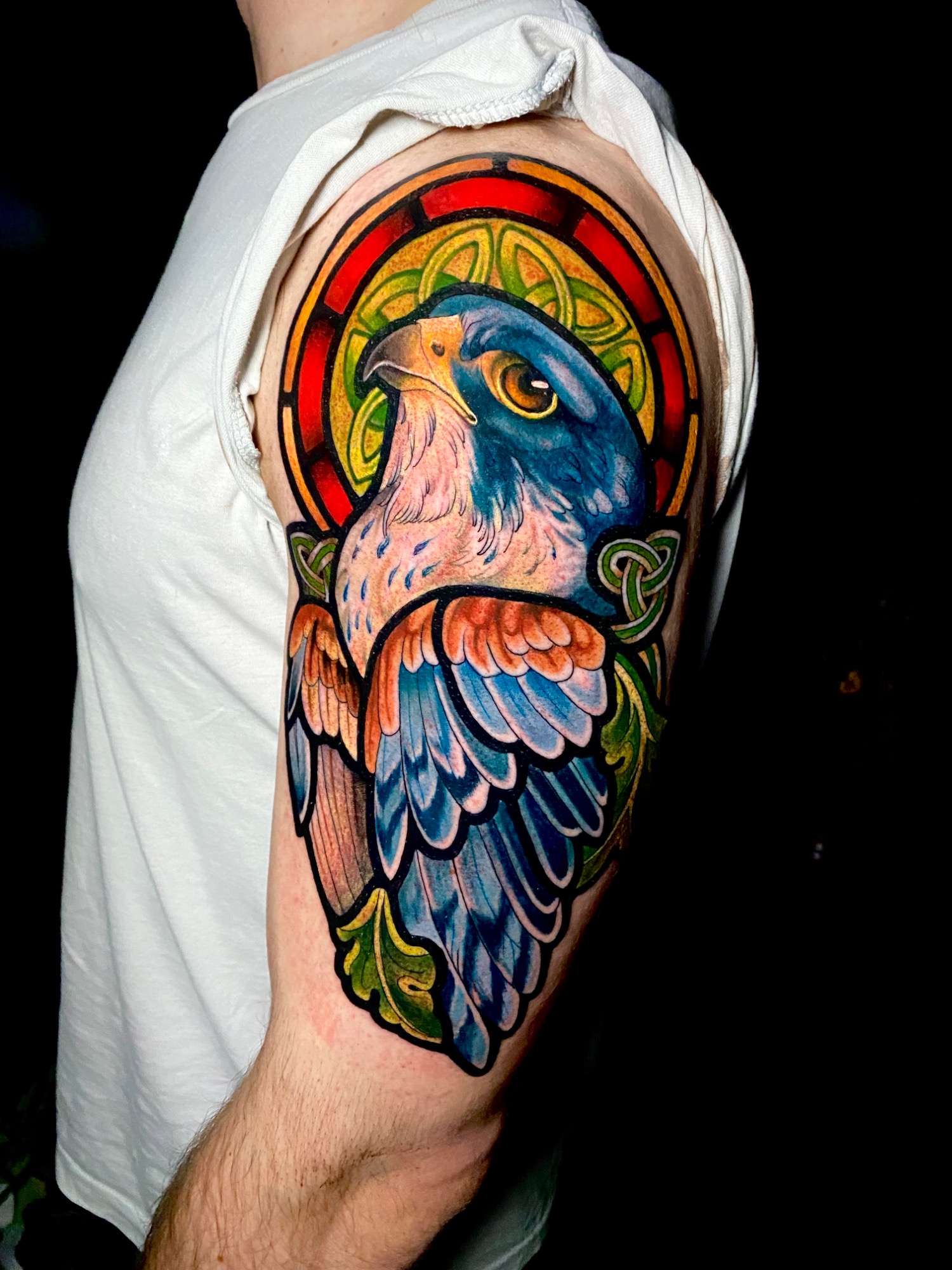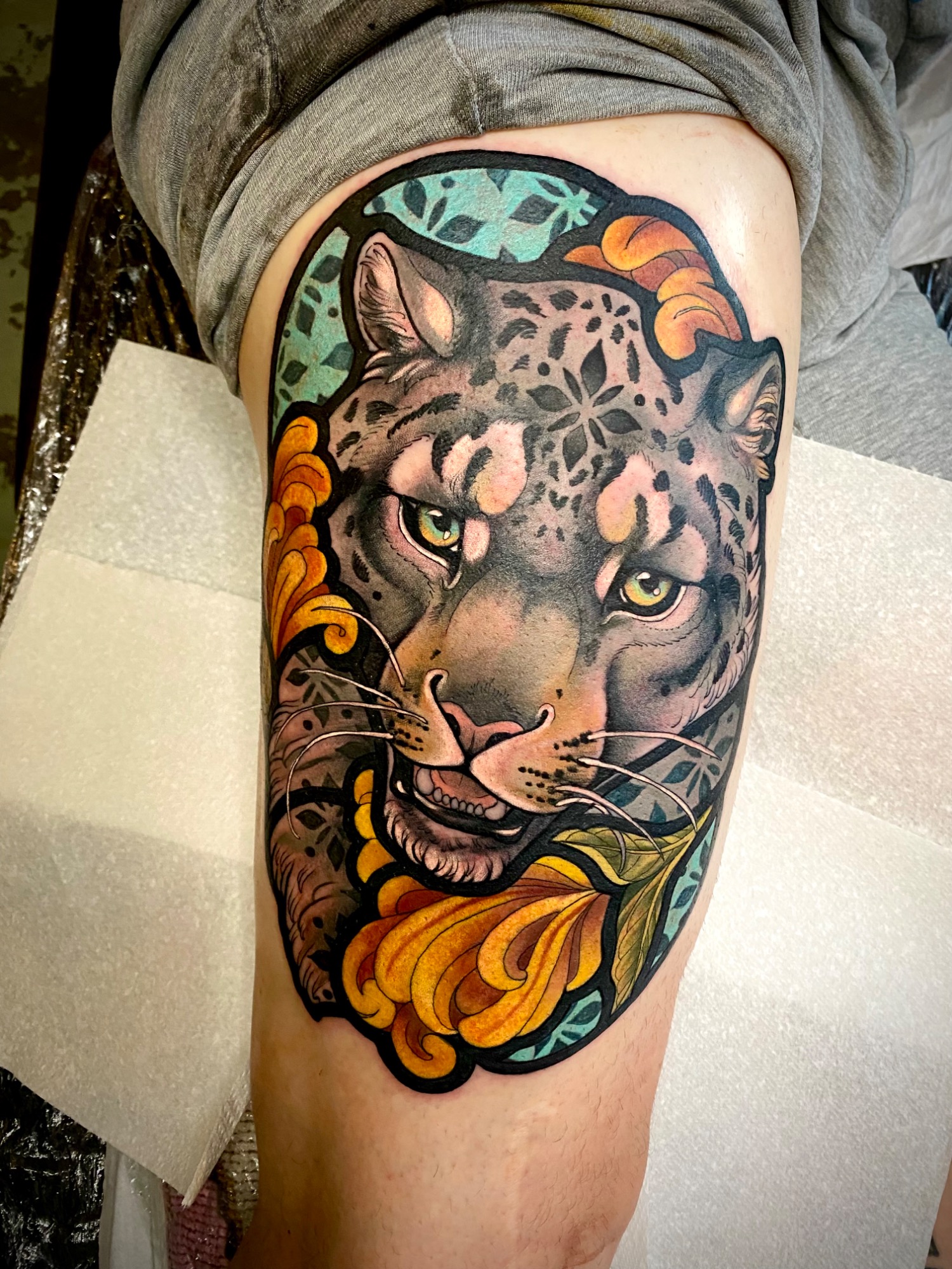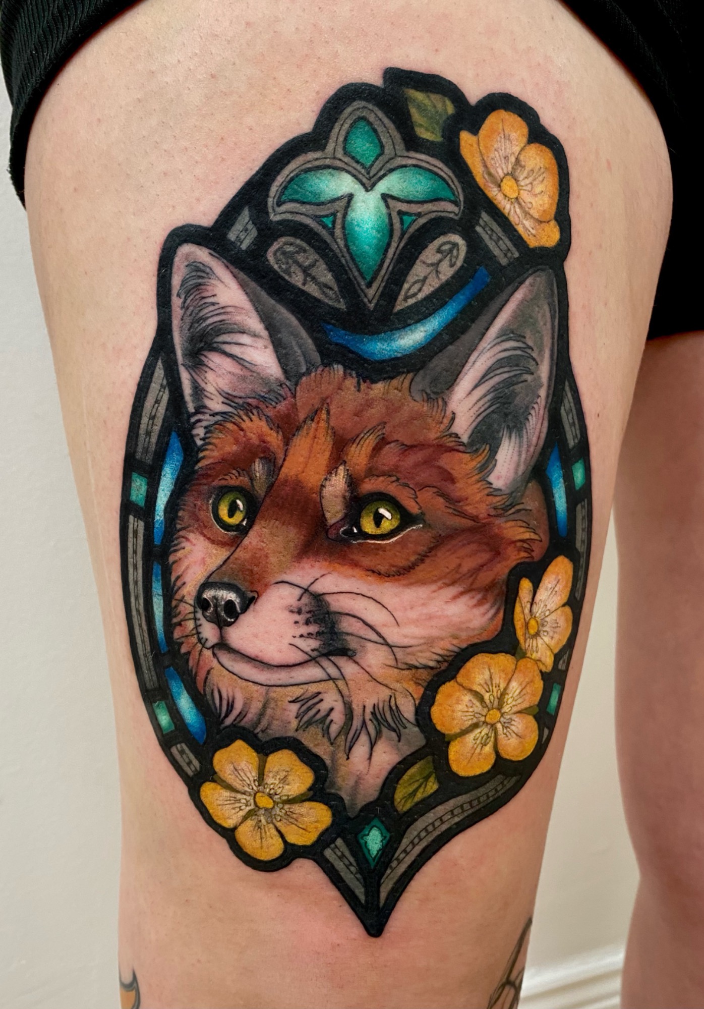 Lauren specialises in vibrant colour tattoos, best known for her distinctive stained glass style tattoos. She loves to take on projects ranging from pet portraits, fantasy and all aspects of the natural world. She has lived in the North of England all her life but travelled and worked guest spots in Europe before meeting partner Alex.